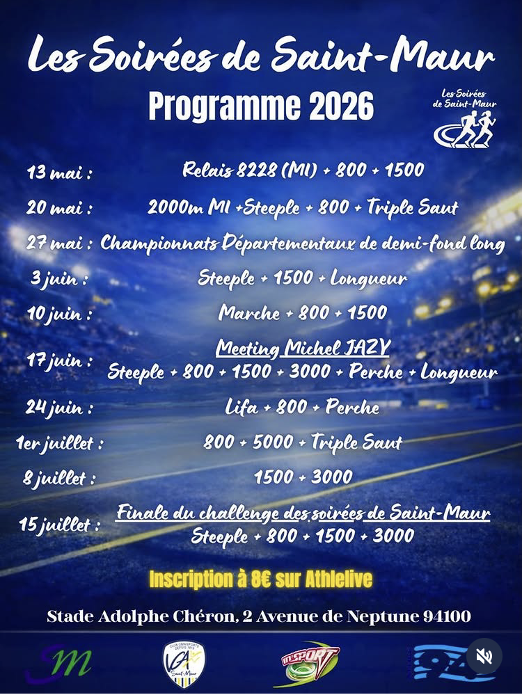 – Mercredi 27 mai – Départementaux de 1/2 fond long (3000m / steeple / 5000m) – Gratuit 94